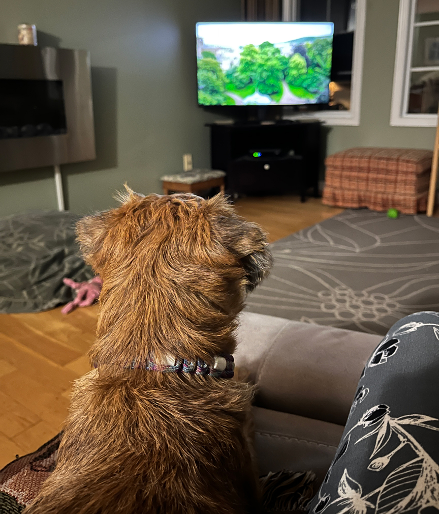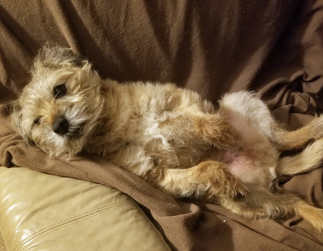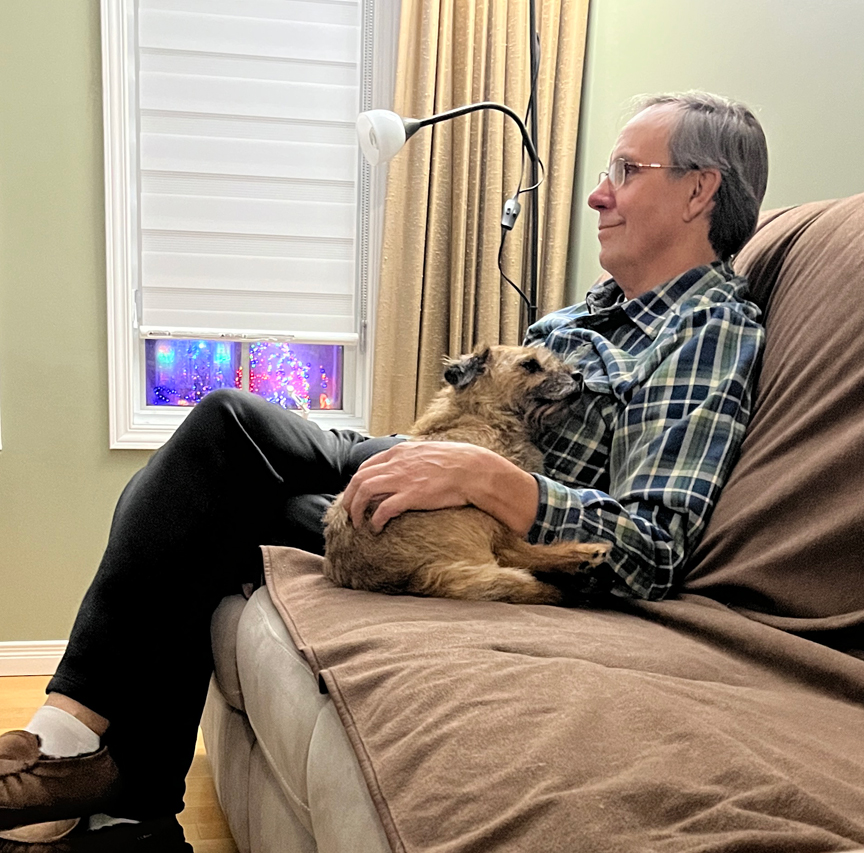 Wiggle butt Molly enjoying the view from Fred's lap.