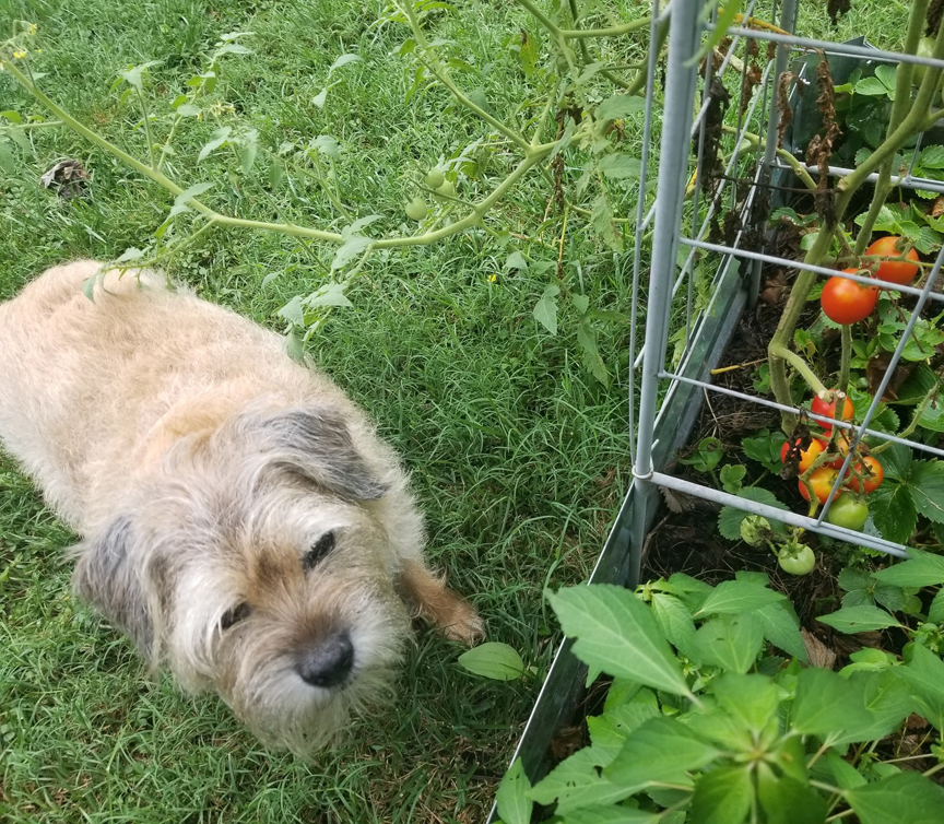 Pickles stayed home with Chris as she can too easily get through the fence at the field and it is surrounded by inviting wide open spaces that are home to coyotes amongst other dangers.
