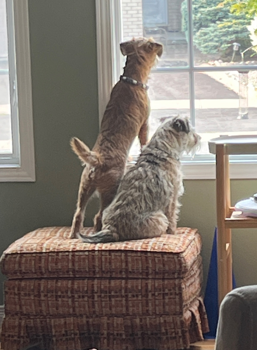 Digger and Pickles have the best spot for keeping an eye on all the comings and goings.