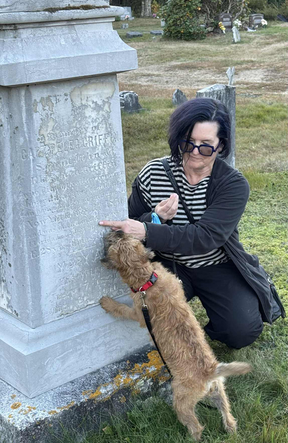 Molly taking a keen interest in family history on the way home from Nova Scotia