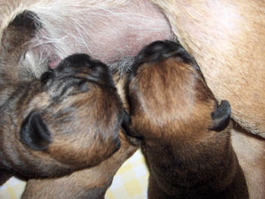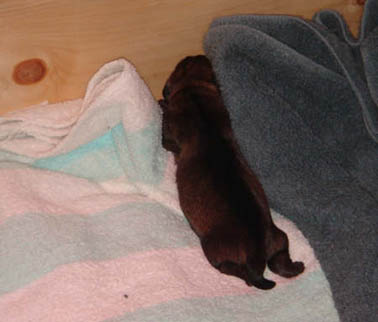 Cailin slides in (belly up) between her sisters, in pursuit of a better teat