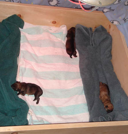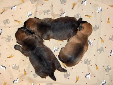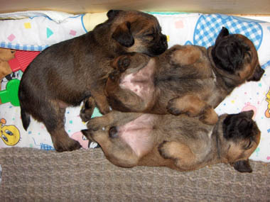 Cailin (right way up), Bretta & Aoife just settled down for a short winter's nap