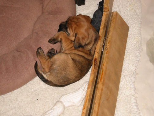 Daisy, all sacked out Momma style - ten-day-old pups can sure be demanding