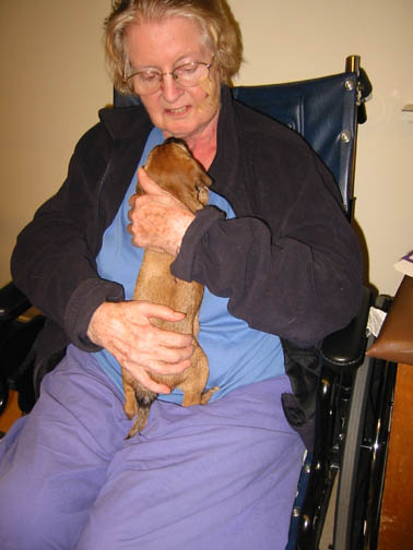 One on one - pup-a-lump one enjoys some "quality time" with Anna and Mom